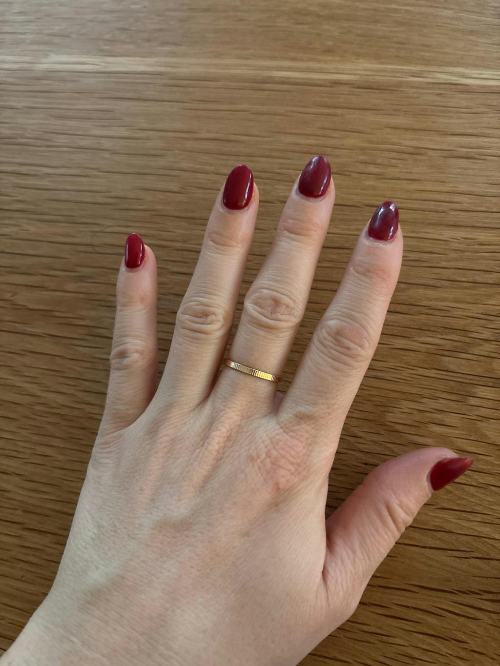 Makaro Gold consists of a 14 carat gold-plating on a brass core. In contrast to 98% of all jewelry labels, who use chemical gold-plating for their jewelry, we do things differently. At Makaro, instead of taking the chemical route, we apply our gold layer mechanically. This way, zero toxins are needed, as well as minimal water consumption. This method makes our jewelry not only much more sustainable but also much more durable! With its up to 100x thicker gold layer, your Makaro pieces will last you for years to come.